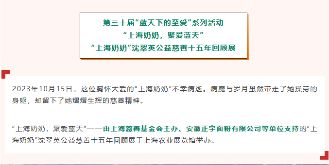 公益熱點(diǎn) | 安徽正宇面業(yè)出席“上海奶奶”沈翠英公益慈善十五周年回顧展
