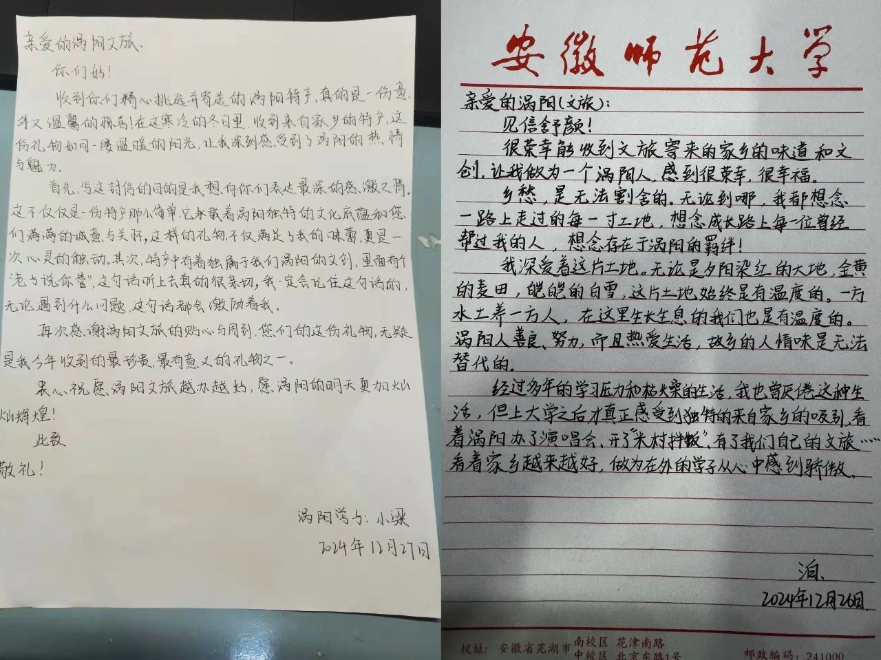 這次特產(chǎn)贈送活動,正宇集團(tuán)為渦陽游子送出了旗下非油炸系列的正宇天下一皖方便面和喜由季干脆面,方便快捷又不失渦陽風(fēng)味特色,為遠(yuǎn)在他鄉(xiāng)的游子們提供了能隨時品味家鄉(xiāng)味道的便捷選擇。 收到特產(chǎn)的游子們滿心歡喜,紛紛在社交媒體上曬出照片,與廣大網(wǎng)友共同分享這份承載著家鄉(xiāng)記憶的驚喜。 更有許多游子,用筆墨書寫了這份感動,一張張飽含對家鄉(xiāng)思念的信紙跨越千山萬水來到渦陽,表達(dá)著他們對本次活動的感謝,同時為家鄉(xiāng)的發(fā)展送上了誠摯的祝福。